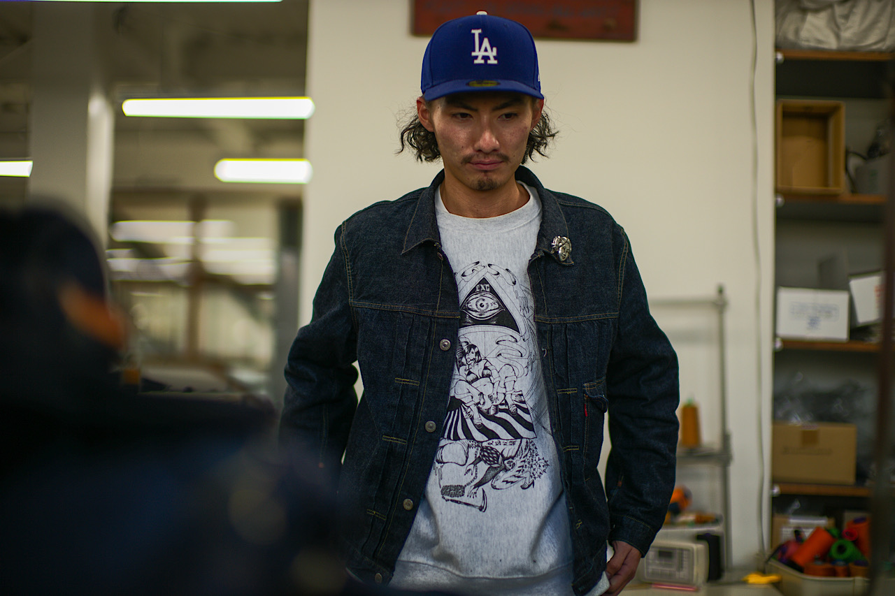 田中に関しましては、近くで撮影出来ないLowbrow Artなスウェットに30’sJKを合わせて登場してくれました。