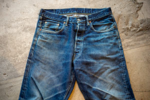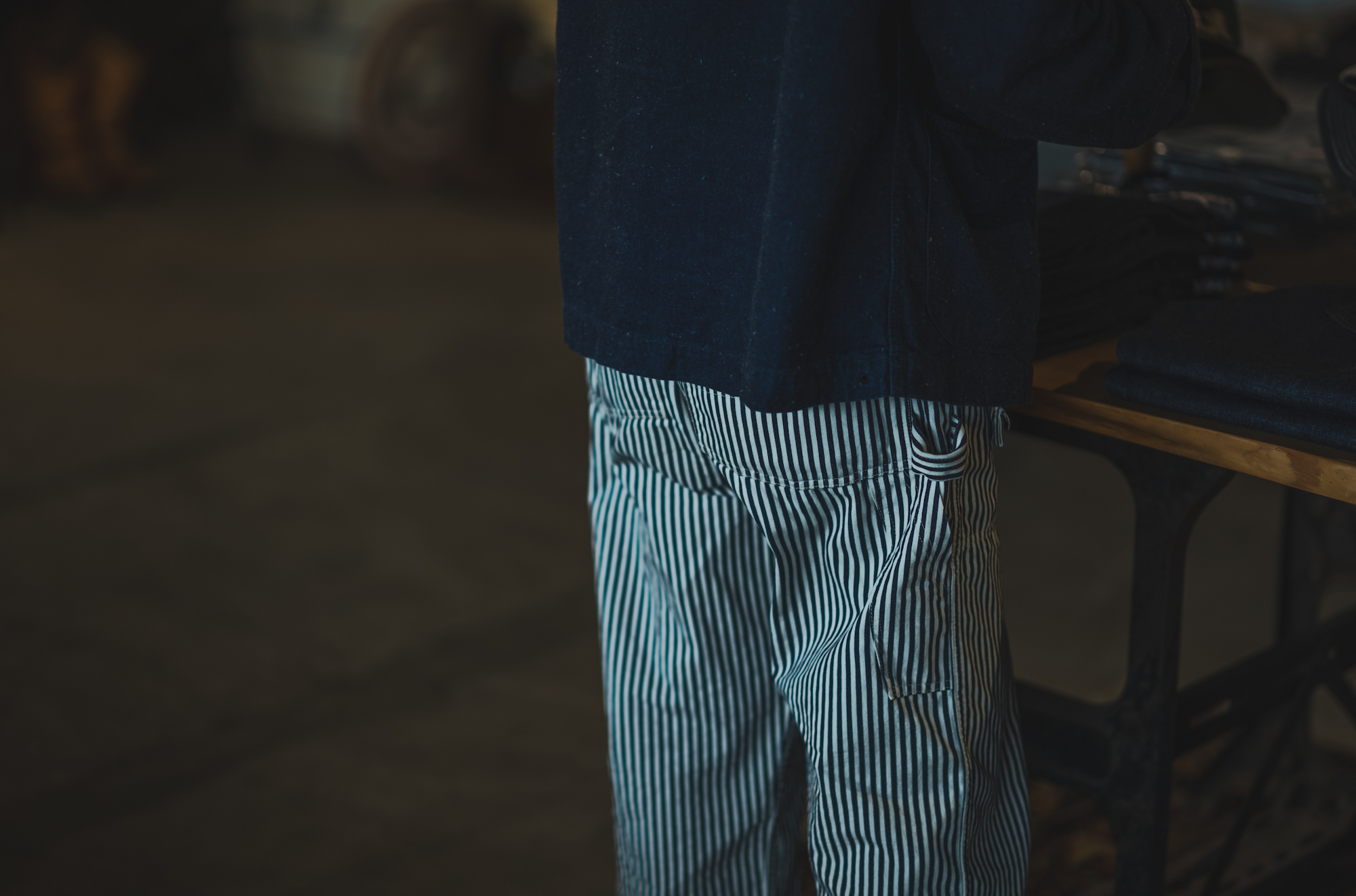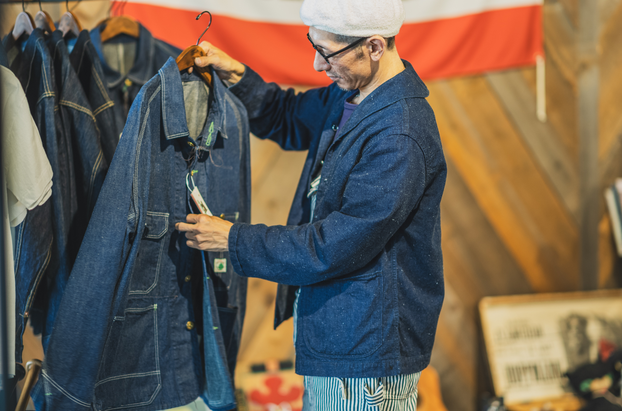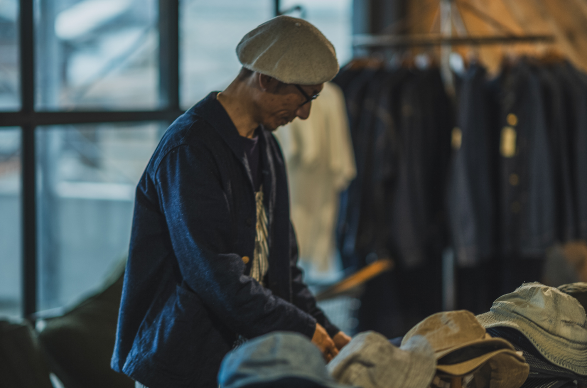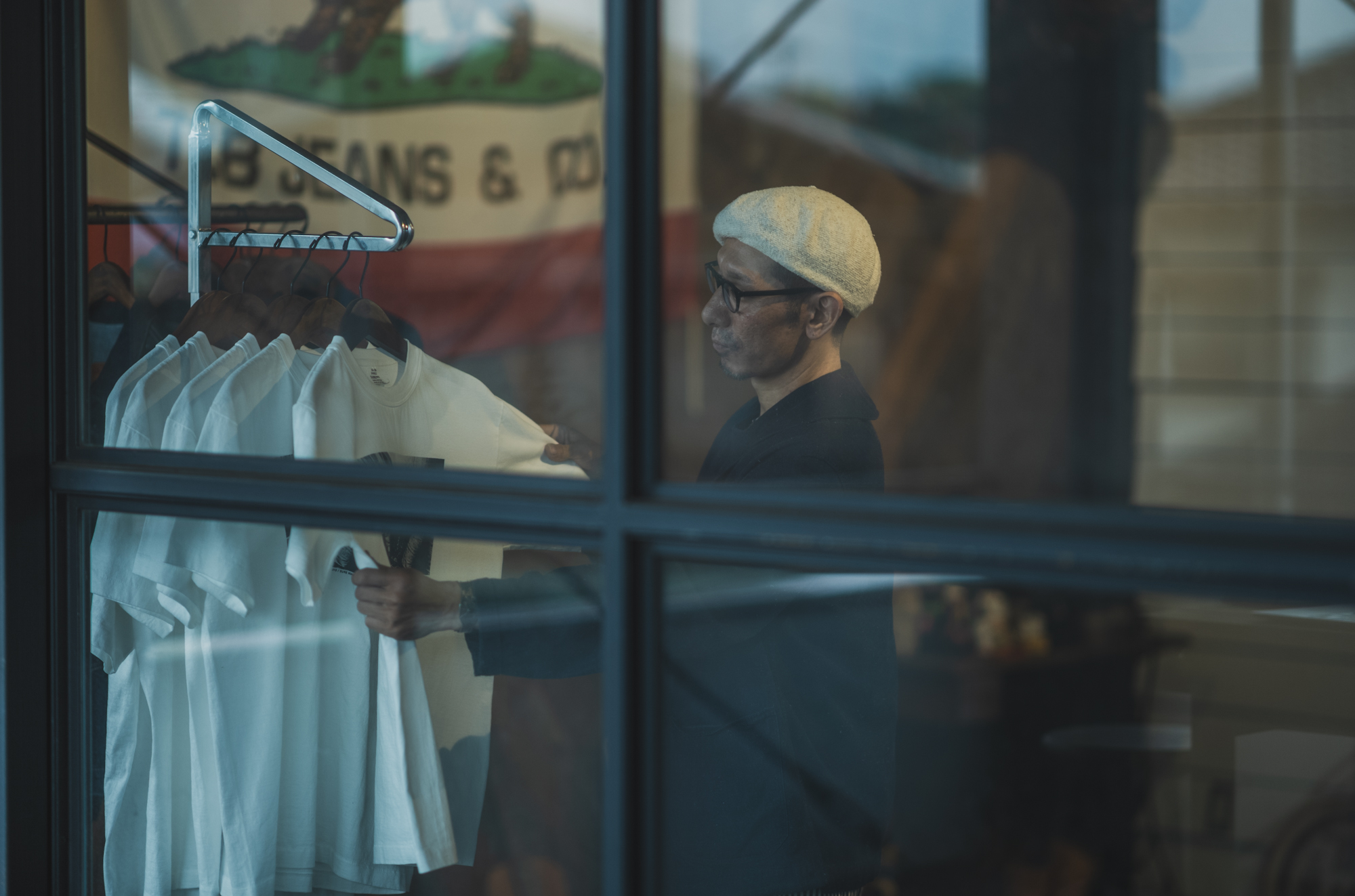 Today, he’s wearing a full TCB outfit — the Handyman HIC, Seamen Jacket, and the TCB × XX Development 40’s USN Reversible Tee.