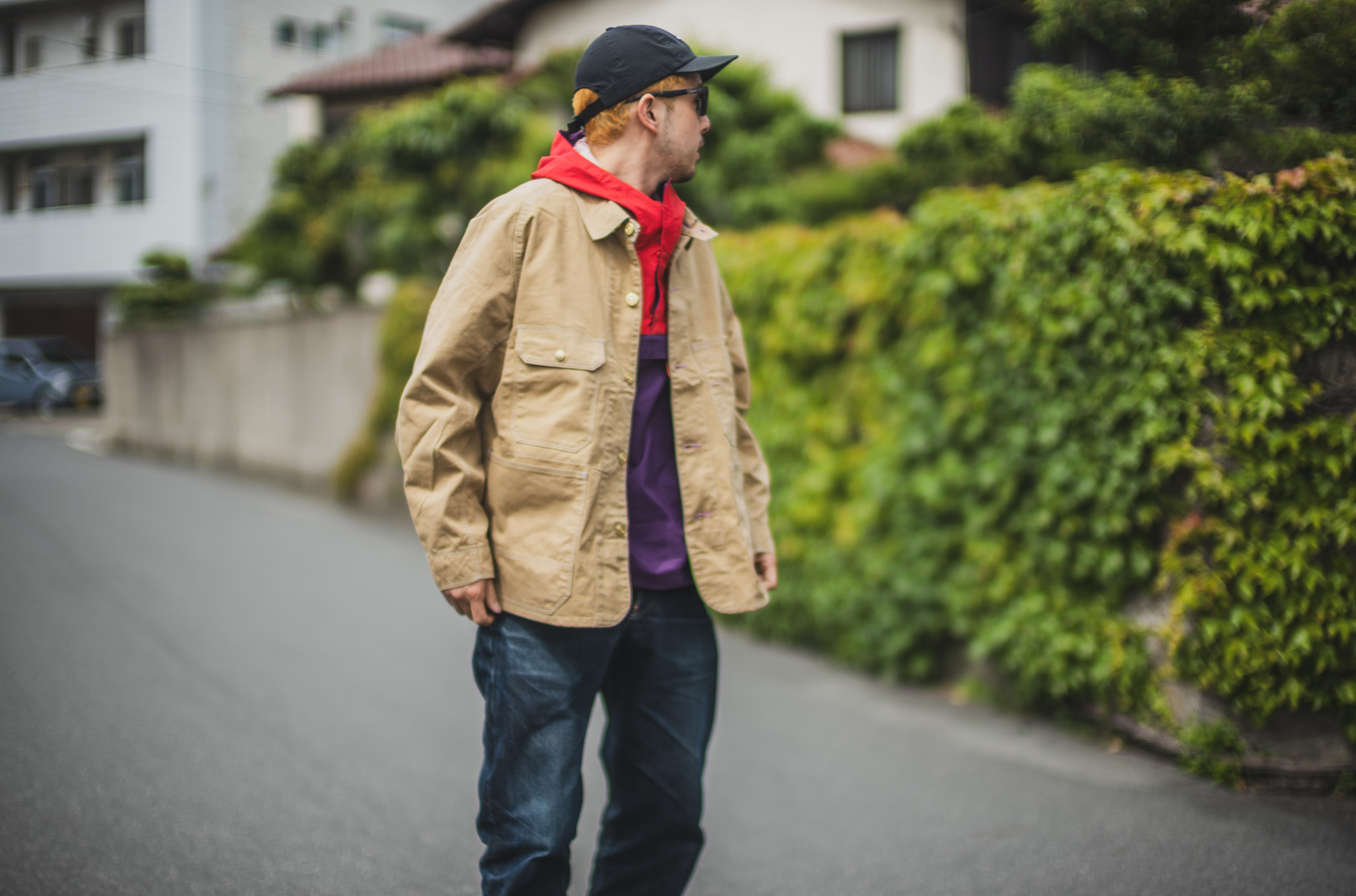 It was chilly in Kojima today, so Ryo layered it with a Patagonia anorak underneath—an unexpectedly charming combination.