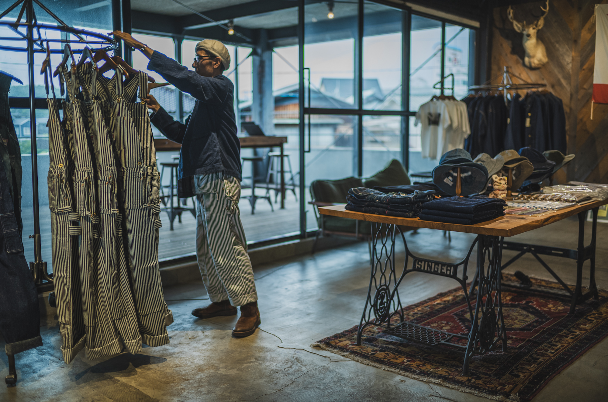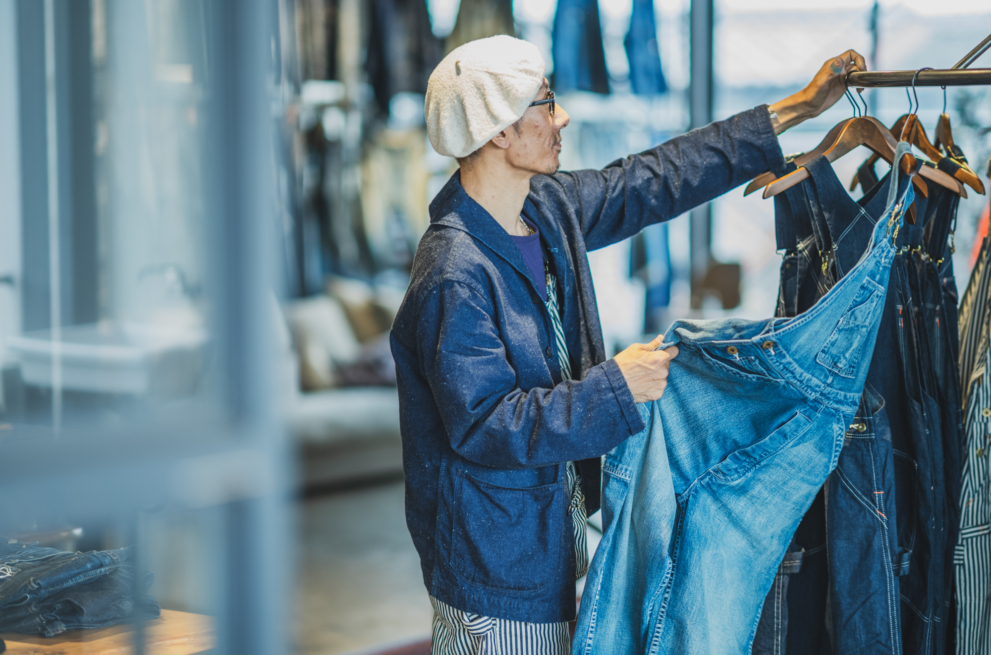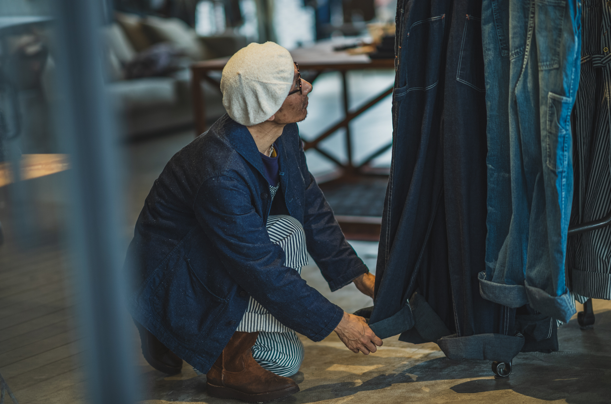 Today, he’s wearing a full TCB outfit — the Handyman HIC, Seamen Jacket, and the TCB × XX Development 40’s USN Reversible Tee.